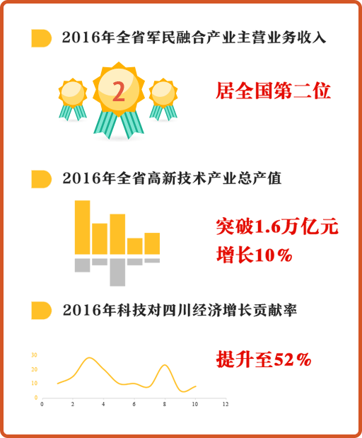 一年多来,我省率先在全国建立省级军民融合发展领导机构;率先与12家中央军工单位建立战略合作关系⋯⋯目前,四川已建起10大军民融合高技术产业基地,落实投资逾570亿元。