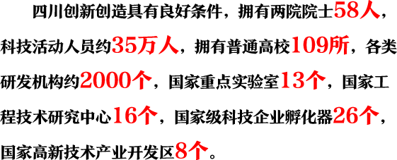 2013年,创新驱动发展被确定为全省“三大发展战略”之一。2015年8月,四川等8个区域被国家确定为系统推进全面创新改革试验区。这是改革开放30多年来中央赋予四川最重大的改革试验任务。